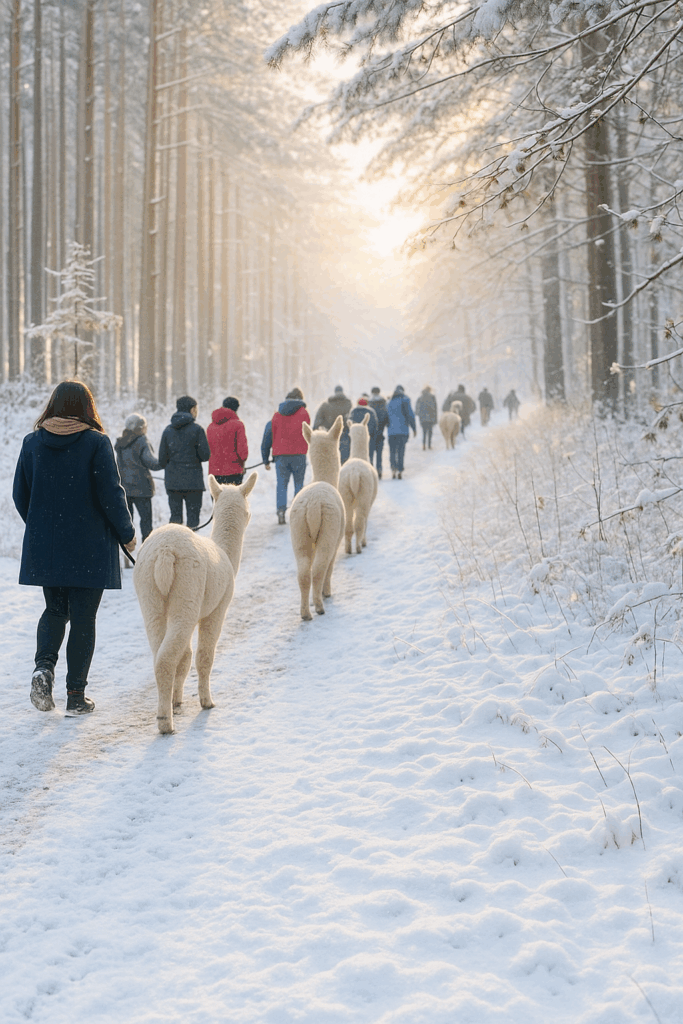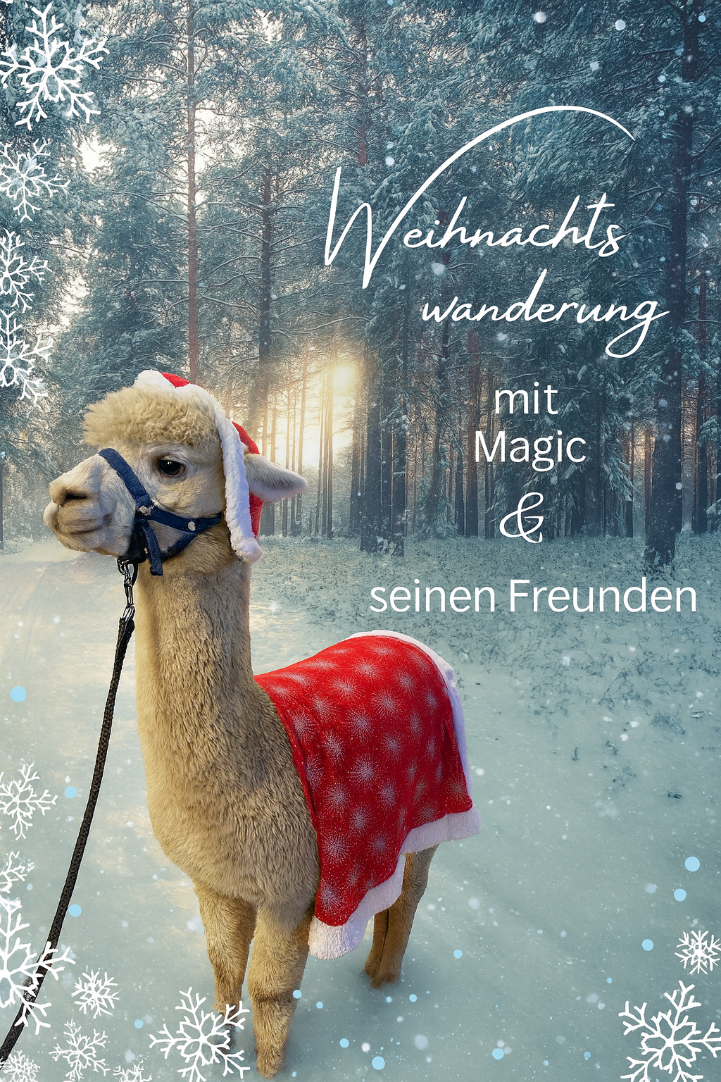 Ganz bewusst Zeit nehmen, für Dich und die Menschen, die Dir an Weihnachten am wichtigsten sind. Zusammen mit unseren Alpakas erlebt ihr den Zauber der winterlichen Natur in ihrer Schönheit und Ruhe während ihr mit eurem flauschigen Gefährten in gemütlichem Tempo durch die Wälder rund um unseren Hof wandert. Und was wäre ein Winter ohne Lagerfeuer? Wenn ihr zurück kommt, wartet ein gemütliches Lagerfeuer mit Stockbrot und Punsch auf Euch.
