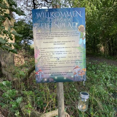 Ein Teil des Naturlehrpfads ist dem Elfenpfad rund um unser geschütztes Wasserbiotop gewidmet.