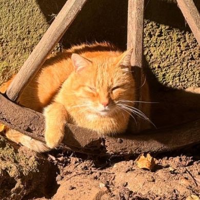 Sein Name mag auf einen gemütlichen, runden Kater hindeuten – doch Garfield hat sich anders entschieden. Heute ist er drahtig, beweglich und ständig unterwegs. Neugierig durchstreift er den Hof, beobachtet alles mit wachen Augen und hat stets seine eigenen Pläne. Nur manchmal, wenn er eine Pause braucht, rollt er sich in der Heuraufe der Alpakas zusammen – sehr zum Missfallen der eigentlichen Besitzer.