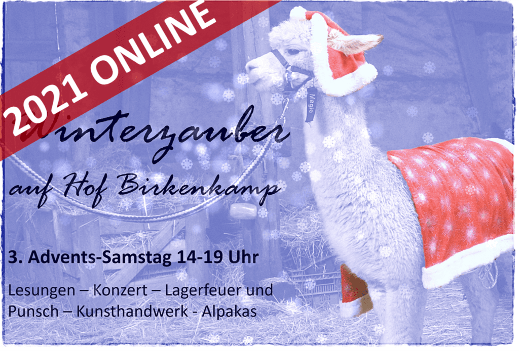 Das Hofcafé hat im Rahmen unseres “Adventszaubers im Alpakastall” mit unseren Adventsspezialitäten an allen 4 Adventswochenenden geöffnet. Ihr findet festlich geschmückte Stehtische im Alpakastall.